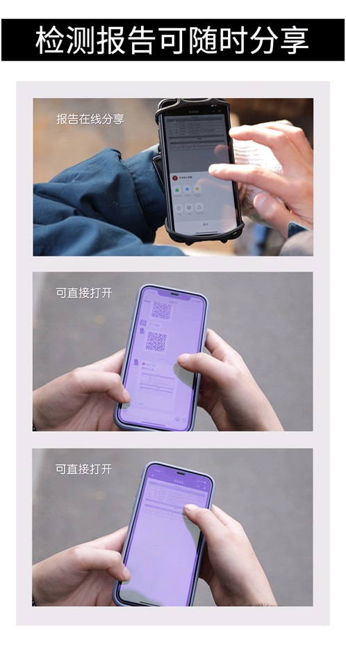 | 數(shù)據(jù)報告異地分享 | + | 全角度隨意測量,無需手動設(shè)置方向 | |