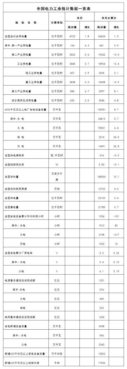 注:全社會(huì)用電量指標(biāo)是全口徑數(shù)據(jù)。